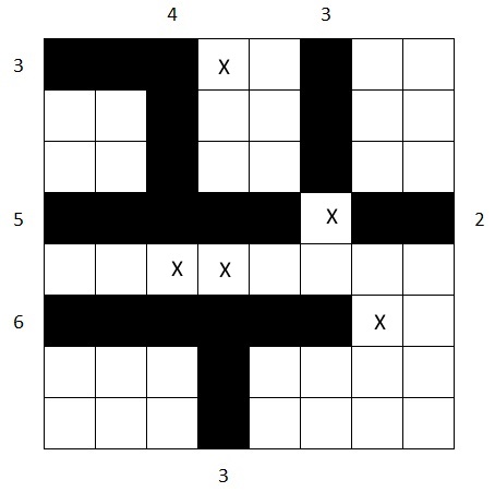 Oh wow. This is what happens when I turn my editor’s brain off. I completely misread the instructions. The numbers are for blank spaces, not for number of filled spaces like in Battleships. Okay, so let’s put in those spaces now.